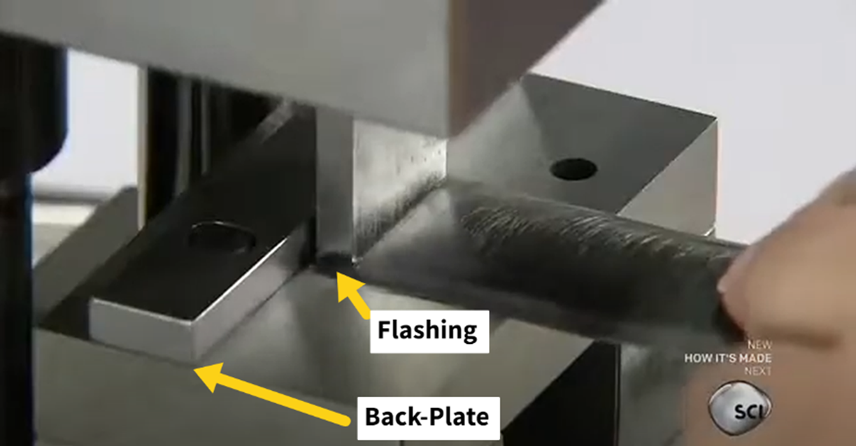 Current methods from competitors utilize an oversized back-plate relative to the punch, which produces flashing and waste of about 15% of the initial composite blank