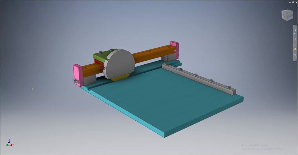 A robust and precise design was modeled in AutoCAD inventor. Major components include the blade holder, linear rail, rail stop, guide rail, and blade cover.